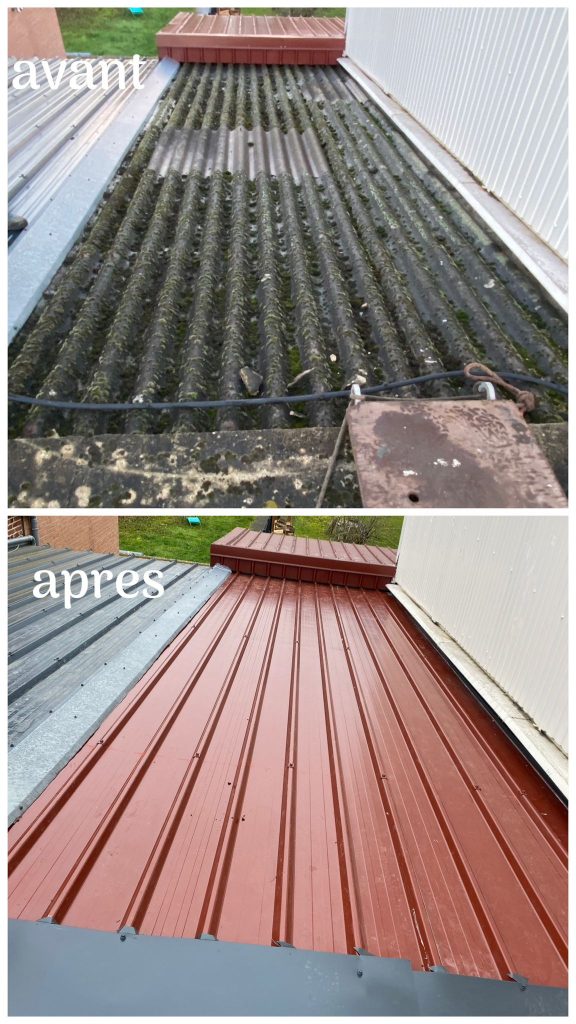 Le démoussage par nos équipes va bien au-delà d’un simple nettoyage superficiel. Après élimination mécanique des végétations parasites, nous appliquons un traitement hydrofuge nano-technologique qui crée une barrière invisible contre l’humidité. Ce protocole complet (inspection préalable, nettoyage doux, double application) prolonge la durée de vie des toitures de 30% minimum.